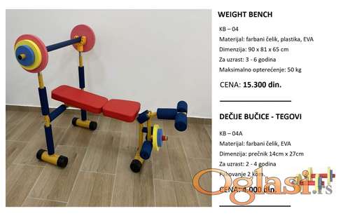 Tekst oglasa: <p>Benč klupa - DEČJE sprave ZA VEŽBANJE</p> <p>U ponudi su kvalitetne dečje sprave za vežbanje, namenjene razvoju snage, koordinacije, ravnoteže i pravilnog držanja kod dece. </p> <p>Sprave su bezbedne, stabilne i prilagođene dečjem uzrastu, pogodne za vrtiće, škole, igraonice, sportske i rehabilitacione centre, kao i za kućnu i dvorišnu upotrebu. Izrađene od kvalitetnih materijala, jednostavne za korišćenje i dugotrajnog veka. </p> <p>TRAKA - TRAMPOLINA - TWISTER - STEPER - VESLANJE SA ELASTIČNOM TRAKOM - VESLANJE JEDNA RUČKA - VESLANJE DVE RUČKE - AIR WALKER - WEIGHT BENČ - BIKE - MINI STEPER - SPRAVA ZA VOŽNJU </p> <p>⭐ Cena iskazana bez PDV-a <br /> ⭐ Slanje brzom poštom</p> <p>Zatražite kompletan katalog sa cenama i modelima: Viber / WhatsApp 060 079 0718<br /> ______________</p> <p>⭐ FB stranica - /Metal. Loft. Studio<br /> ⭐ INST stranica - /metal. loft. Studio </p> <p>#decjesprave #decjifitnes #fitneszadecu #zdravodete #aktivnadeca #sportzadecu #igraikretanje #razvojmotorike #poklonzadecu #poklonzadete #poklonzadevojcice #poklonzadecake #poklonzarodjendan #rodjendanskipoklon #idejazapoklon #poklonideje #savrsenpoklon #novagodina #novogodisnjipokloni #novogodisnjipoklon #poklonzanovugodinu #praznicnipokloni #fitnessoprema #sportskaprema #spravezavezbanje #kucnifitnes #fitneskodkuce #vrtici #skole #igraonice #sportskicentri #rehabilitacija #opremazavrtice #decijeigraonice #rođendaonica</p> |