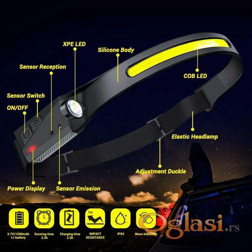 Tekst oglasa: <p>Novo! ! !</p> <p>2xLED lampa za glavu (COB i XPE LED) sa <strong>dvostrukim svetlom i integrisanom baterijom. </strong></p> <p>Multifunkcionalna sa 6 režima osvetljenja.</p> <p>Praktičan on/off IR motion <strong>senzor na pokret ruke</strong>. Brzo Isključenje / Uključenje lampe pokretom ruke pored glave!</p> <p>Podesiv silikonski udoban kaiš za glavu. Pro waterproof IPX4 <strong>zaštita za kišu</strong>. Lampa je lagana.</p> <p>1500Lumens, 2500mAh Li baterija, 270 stepeni osvetljenja + nagib napred 90 stepeni.</p> <p>Punjenje baterije preko USB-C kabla koji ide uz lampu.</p> <p><strong>Za lov, kampovanje, pecanje, izvođenje radova u indistriji, sport, trčanje kroz šumu, biciklizam.</strong></p> <p><strong>Lično preuzimanje na Novom Beogradu / Zemunu ili Pančevu ili šaljem Postexpres-om na vaš trošak. </strong></p> <div> <div> <div> </div> <div> <div> <div> </div> <div> <p> </p> <p> </p> </div> </div> </div> </div> </div> |