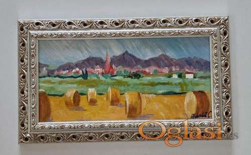Tekst oglasa: <p>Ulje na platnu Miris pokosenog sena, prelepo umetnicko delo. Slika je uramljena u jako lep ram, dimenzije slike sa ramom 50 x 30. Privatna kolekcija.</p> |