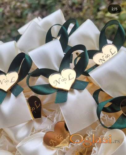 Tekst oglasa: <ul><li>Cvetići za kićenje svatova</li> <li>Bež traka, zelena traka/srce sa inicijalima</li> <li>Boju trake i detalje možemo menjati</li> <li>Korsaž za rever - 42 dinara</li> <li>Narukvica - 47 dinara</li> <li>Možemo gravirati imena ili inicijale</li> <li>Pločica na kojoj graviramo može biti u obliku kruga, srca, beskonačnosti, deteline, srca...</li> <li>Vreme izrade po dogovoru</li> <li>Šaljemo post expressom</li> <li>Za više informacija kontaktirajte nas pozivom na broj, porukom ili putem Viber-a</li> <li> </li> </ul> |