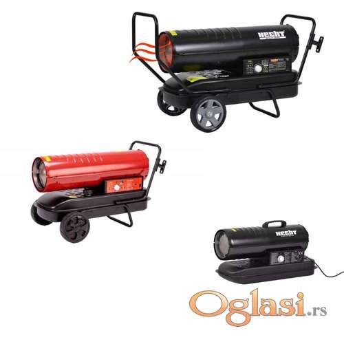 Tekst oglasa: <p>AGM Dizel grejač AGM ADH 37 - 49.390 dinara<br /><br /> Izlazna snaga: 37 kW<br /><br /> Radni napon: 230 V – 50 Hz<br /><br /> Vrsta goriva: kerozin / dizel<br /><br /> Potrošnja goriva: 3.6 l/h<br /><br /> Grejna površina: 295 m2<br /><br /> Protok vazduha: 588 m³ /h<br /><br /> Maks. Izlazna temperatura vazduha: 400 ˚C<br /><br /> Masa: 26.1 kg<br /><br /> ------------------------------------------------------------------------------<br /><br /><br /> HECHT dizel top 20 kW za zagrevanje 166m² - 44.500 dinara<br /><br /> Snaga: 20 kW<br /><br /> Napon: 230V / 50Hz<br /><br /> Sadržaj rezervoara goriva: 19 l<br /><br /> Potrošnja: oko 2 l / h<br /><br /> Za zagrevanje prostorija do 166 m²<br /><br /> -----------------------------------------------------------------------<br /><br /><br /> HECHT dizel top 37 kW za zagrevanje 295 m² - 59.900 dinara<br /><br /> Snaga: 37 kW<br /><br /> Izvor: 230v / 50Hz.<br /><br /> Sadržaj rezervoara goriva: 38 l, potrošnja je oko 3,6 l / h.<br /><br /> Potrošnja: 3,6 l / h.<br /><br /> Za zagrevanje prostorija do 295 m2<br /><br /> ---------------------------------------------------------------------------------------------<br /><br /><br /> HECHT dizel top 51 kW za zagrevanje 415 m² - 72.900 dinara<br /><br /><br /><br /> Iznad prosečne topline 51.000 W / 175.000 BTU<br /><br /> Kapacitet rezervoara od 50 l dovoljan je za otprilike 10 sati rada<br /><br /> Maksimalna površina za zagrevanje je do 415 m2<br /><br /> Protok vazduha 610 m3 / h<br /><br /> Maksimalna temperatura izlaza za vazduh 660 ° C<br /><br /> Digitalni indikator temperature i lako podesiv termostat<br /><br /> Veliki točkovi za lak transport<br /><br /> Pokazatelj nivoa goriva<br /><br /> Naravno, postoji temperaturni osigurač protiv pregrevanja ili elektronički senzor plamena na temelju fotoćelija</p> |