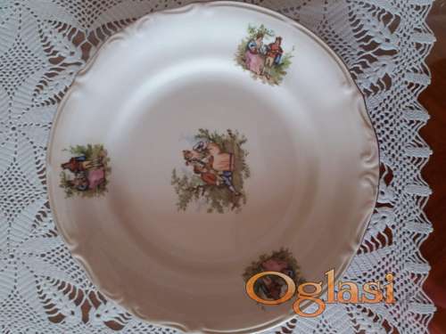 Tekst oglasa: <p>Desertni porcelanski tanjiri sa motivom Romeo i Julija,Poljska.Neoštećeni.Cena 12 kom.po 350 din.komad.</p> |