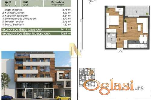 Tekst oglasa: Oglašavamo prodaju stambeno-poslovnog objekt, nadomak Limana. Projektovan po meri modernog kupca, ovaj objekat nudi savršen spoj privatnosti i luksuza. Struktura: Suteren: prostrana garažna mesta Poslovni prostori: dve jedinice u prizemlju i mezanin Stanovi: 12 pažljivo dizajniranih dvosobnih i trosobnih jedinica. Penthouse: 129 m2 na vrhu sa 100 m2 terase. Vrhunski kvalitet: Zgrada se gradi od premium materijala sa fokusom na energetsku efikasnost i zvučnu izolaciju. Ekskluzivnost ovog projekta ističe korišćenjem isključivo premium materijala i ugradnih elemenata sa ciljem da vam pruži maksimalan kvalitet, komfor i dugotrajnost. Grejanje na gas sa kalorimetrima, omogućavaju vam da sami regulišete temperaturu u stanu, što dodatno smanjuje troškove grejanja. Za kupce prve nekretnine moguć povrat PDV-a. Rok završetka avgust 2027. godina. Za sve dodatne informacije i zakazivanje razgledanja nekretnine obratiti se na broj telefona 066 82 92 111 Katarina Birinji, broj licence 4091, Novi Sad, Bulevar Evrope 44, N-NEKRETNINE, upisan u registar posrednika 1405. |