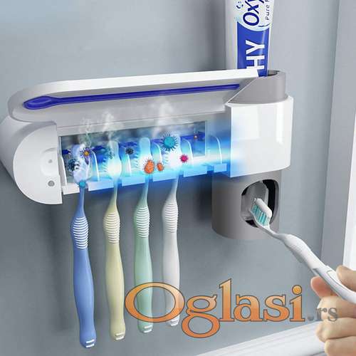 Tekst oglasa: <p>Cetkica za zube je prljavija nego sto ste mislili, jer nevidljive i uporne bakterije ostaju na cetkici i nakon sto je isperete vodom. Ali ovaj drzac za cetkice ce vam pomoci da resite problem. <br /> UV drzac za cetkice za zube poseduje UV sterilizator koji moze ubiti 99,9% bakterija tako da ce vasa cetkica biti potpuno sterilizovana i cista za svako sledece koriscenje. <br /> Ispod poklopca mozete odloziti 4 cetkice koje ce se nakon pranja zuba sterilisati pod uv lampama. <br /> Ovaj drzac za cetkice poseduje i vakuum dozer za pastu za zube koji ce pritiskom cetkice istisnuti odgovaraju kolicinu paste i samim tim ce i vasa pasta mnogo duze trajati. <br /> Olaksajte pranje zuba i sacuvajte higijenu vas i vase porodice. <br /> Drzac za 4 cetkice <br /> Vakuum dozer za pastu <br /> UV sterilizator<br /><strong>Mogucnost licnog preuzimanja na novom beogradu ! !<br /> Slanjem brzom postom</strong></p> |