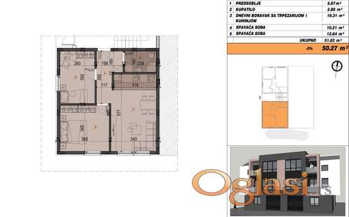 Tekst oglasa: U ponudi je garažni stan površine 50 m², koji se nalazi u modernom stambenom objektu u izgradnji, u mirnom i urbanom delu Adica. Stan ima redovan ulaz iz zgrade, što pruža dodatnu udobnost i funkcionalnost. Rok završetka je četvrti kvartal 2026. Struktura stana: Dve spavaće sobe Dnevni boravak u open space konceptu sa trpezarijom i kuhinjom Redovan ulaz iz zajedničkog hodnika zgrade Stan je projektovan tako da maksimalno iskoristi prostor i pruži prijatan ambijent za stanovanje. U neposrednoj blizini nalaze se svi ključni sadržaji — škole, marketi, gradski prevoz i zelene površine. U oglašenu cenu uračunata je posrednička naknada u iznosu od 3%. Kontakt: 0600601204 |