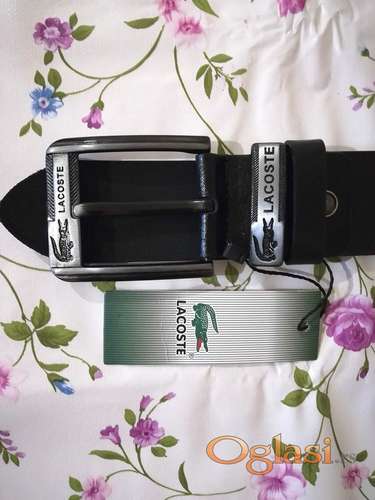 Tekst oglasa: <p>Novi muski kozni markirani kais Lacoste. Zemlja porekla Turska.</p> <p>Odlicni muski kozni markirani kais izradjen od vrlo kvalitetne, prave i debele koze.</p> <p>Nesto sto bi svaki ozbiljan muskarac trebalo da poseduje.</p> <p>Kais je veoma prijatan na dodir, ima onaj prepoznatljiv miris koze i uzivo izgleda jos bolje nego na slikama.</p> <p>Novi muski kozni markirani kais Lacoste sa etiketom. <br /><br /> Boja: Crna koza sa srebrnom snalom. <br /><br /> Sastav: 100% prirodna govedja koza. <br /><br /> Dimenzije: <br /><br /> Kais Kozni Lacoste Crna koza Srebrna snala, slova i znak Lacoste na snali <br /> duzina 125 cm bez snale, sa snalom 130 cm <br /> sirina 4,3 cm <br /> debljina 0,3 cm</p> <p> </p> <p><strong>Radi jeftinije postarine mozete izabrati opciju uplate novca na racun, tako da cete time platiti manju postarinu i do 250 dinara. Broj racuna za uplatu novca cete zatraziti od nas. Isporuka robe se vrsi brzom postom PostExpress na adresu koju dobijemo od Vas.</strong></p> |