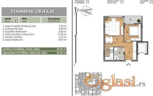 Tekst oglasa: <p>BULEVAR, 43m2, DVOSOBAN</p> <p>Predstavljamo Vam prodaju dvosobnog stana u izgradnji sa rokom završetka kraj decembra 2024. godine. Zgrada je lokacijski odlično pozicionirana u blizini Sajma i Bulevara oslobođenja. Svi stanovi su identične strukture i rasporeda po vertikali. Prostorije koje ih čine su: dnevna soba sa trpezarijskim delom i kuhinjom, spavaća soba, kupatilo, hodnik i terasa. Kvalitet gradnje je na prvoklasnom nivou po modernim i evropskim standardima. U stanovima je postavljena najkvalitetnija oprema koja ispunjava zahteve svakog kupca. Uz svaki stan može da se kupi garaža ili parking mesto. </p> <p>OPREMA ZGRADE I STANOVA: </p> <p>Fasada – pored izolacije od 10cm, objekat će krasiti fasadne ploče proizvođača FUNDERMAX i moderne staklene terase.<br /> PVC stolarija – niskoemisiona stakla punjena argonom, sa mehanizmom i profilima Rehau proizvođača koji obećava kvalitet. Roletne su aluminijumske sa električnim prekidačem.<br /> Video interfon<br /> Grejanje – Novosadska toplana, ugrađeni kalorimetri, plaćanje po utrošku<br /> Lift – Električni lift koji se u slučaju nestanka struje spušta u prizemlje i otvara vrata<br /> Pametna kuća – omogućili smo pripremu za uvođenje Smart home sistema<br /> Klima uređaji – postavljeni u dnevnom boravku svakog stana<br /> Kupatilo – Grohe oprema i staklene tuš kabine izrađene po meri<br /> Podovi – obloženi tarketom prve klase i modernom italijanskom keramikom<br /> Unutrašnja vrata – medijapan, bela, lakirana<br /> Sigurnosna vrata: Model: Guard – S Dimenzija: 980x2090mm</p> <p>Cena ovih stanova je izražena sa uračunatim PDV-om + 3% posrednička naknada </p> <p>Za više informacija, možete nas kontaktirati na 063/343-200 ili 021/2300-900, agencija za nekretnine "Šćepanović i saradnici", upisana u Registar posrednika pod brojem 1573, Maksima Gorkog 15, Novi Sad. </p> |