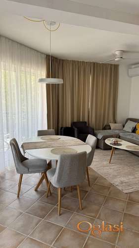 Tekst oglasa: <p>Namješten 2-soban stan u Lastvi Grbaljskoj (Glavati, općina Kotor). 5 minuta vožnje od Budve i plaže Jaz.</p> <p>Zgrada ima tri sprata i sadrži 6 stanova. Zatvoreni kompleks s bazenom i parkingom za 8 automobila</p> <p>Površina stana: 79 m2</p> <p><em>Raspored:</em></p> <p>– Dnevni boravak od 30 m2 s kuhinjom, panoramskim prozorima i terasom</p> <p>– 2 spavaće sobe (14 m2 i 10 m2)</p> <p>– 2 kupaonice</p> <p><em>Završna obrada:</em></p> <p>– Visokokvalitetna renovacija</p> <p>– Prozori s dvostrukim staklom</p> <p>– Automatske rolete</p> <p>– Mreže protiv komaraca</p> <p><em>Oprema:</em></p> <p>– Namještaj (Krevet, kauč, ormari, stolice, blagovaonski stol, kuhinjski set)</p> <p>– Kuhinjski aparati (indukcijska ploča za kuhanje, pećnica, napa, hladnjak, filter za vodu)</p> <p>– Klima uređaji u svakoj sobi</p> <p>– Vec masina</p> <p>– Bojleri u dvije kupaonice</p> <p><em>Parkirno mjesto u zatvorenom kompleksu uključeno je u cijenu</em></p> |