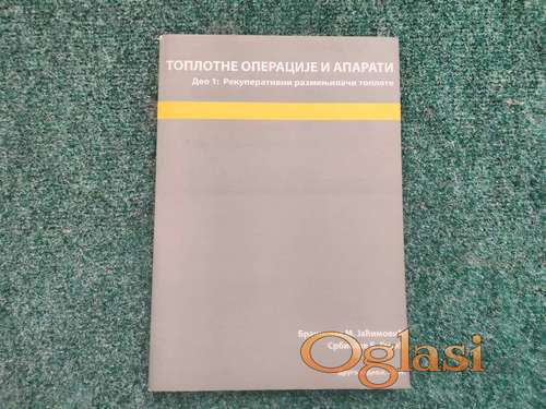 Tekst oglasa: <p>Naslov: Toplotne operacije i aparati, I deo - Rekuperativni razmenjivači toplote<br /> Autor(i): Branislav Jaćimović, Srbislav Genić<br /> Izdavač: Mašinski fakultet<br /> Mesto: Beograd<br /> Godina: 2004<br /> Povez: mek<br /> Strana: 297<br /> Format: 24<br /> Pismo: ćirilica<br /> Stanje knjige: odlično očuvano</p> <p>Način slanja:</p> <ul><li>Poštom - Tiskovina , CC</li> <li><em>Post Express</em></li> <li>Lično preuzimanje (kod Muzej Istorije Jugoslavije (Kuća Cveća), tj. Hajd Parka ili Autokomanda, po dogovru u centru grada)</li> </ul><p>Troškove slanja plaća kupac.</p> |
