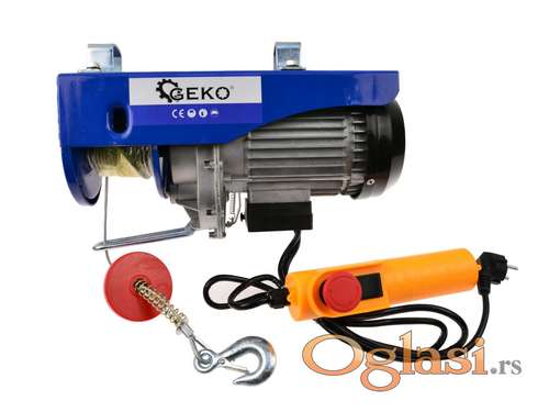 Tekst oglasa: <p></p> <p>Dizalica Električna 400-800 kg <br /> Dizalica podize teret od 400 kg do 800 kg<br /> Dizalica se koristi za povlačenje ili smanjenje opterećenja ili tegova.<br /> Koristi se za izgradnju, <br /> u garaži ili radionici.<br /> KARAKTERISTIKE:<br /> - Snaga: 1300V<br /> - Napajanje: 230V monofazni<br /> - Sistem rada: S3 25% - 10min.<br /> - užeta dužina: 12m<br /> podatke na jedan od kuke:<br /> - Kapacitet: 400kg<br /> - Brzina dizanja: 10m / min.<br /> - Visina dizanja: 12m<br /> podataka pomoću 2 kuke:<br /> - Kapacitet: 800kg<br /> - Brzina dizanja: 5m / min.<br /> - Visina dizanja: 6m<br /> Tip zaštite IP54<br /> Klasa izolacije KL<br /> Novo i ne korišćeno</p> <p> </p> <p>Ukoliko zelite da porucite, posaljite poruku preko SMS PORUKE ili VIBERA <br /> 1. Ime i prezime<br /> 2. Ulica i broj<br /> 3. Postanski broj mesto<br /> 4. Kontakt telefon</p> <p>Ili pozovite na broj telefona<br /> 061/191-4635</p> |