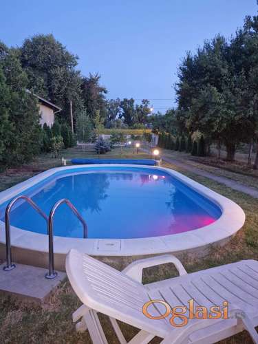 Tekst oglasa: <p>Kuća se nalazi na tihoj i mirnoj lokaciji, u neposrednoj blizini škole,vrtića, ambulante, bazena. Prodaje se kompletno opremljena za život. Uz kuću na placu se nalazi i garaža od 60m2 kao i pomoćni objekat od 10m2 koji je trenutno mašinska soba za bazen. Grejanje je centralno, na gas. Ima dve inverter klime. Kapija na daljinski, video nadzor, interfon, roštilj, sto za stoni tenis, suncobrani, ležaljke... Sendvič zidovi, urađena je i termo i hidro izolacija podova. Bazen je napunjen slanom vodom, ima uv lampu, automatski ph i elektrolizu za hlorisanje vode, noćno svetlo, solarni prekrivač i solarni tuš. Na placu postoji dovoljno parking mesta za 8 vozila, kao i bunar sa pumpom za zalivanje biljaka. U cenu je uračunata posrednička naknada u visini od 3%. Za sve inormacije pozvati 0693831015</p> |