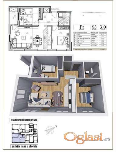 Kategorija: Stanova (Nekretnine, Prodaja) Lokacija: Stari Majur (Srbija, Novi Sad, Petrovaradin) Sobnost: Dvoiposoban Kvadratura: 59 Stanje objekta: U izgradnji Grejanje: Gas Nivo u zgradi: 3. sprat