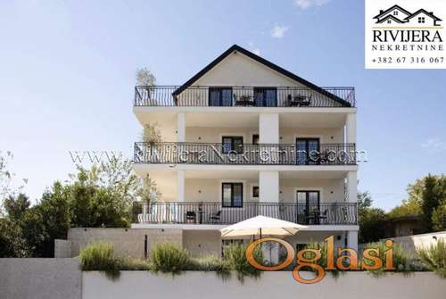Tekst oglasa: <p>Na prodaju moderan jednosoban namjesten stan u Tivatu, ukupne povrsine 103m2 (unutrašnja površina: 55 m² + balkon: 48 m²)<br /><br /> Parking: jedno parking mjesto uključeno u cijenu (mogućnost kupovine dodatnog)</p> <p>Stan se sastoji od spavaće sobe, kuhinje i dnevne sobe u otvorenom stilu, hodnika i kupatila.<br /> Balkon je komplet oko apartmana sa izlazom iz svake sobe – idealno mjesto za odmor i uživanje tokom ljeta.</p> <p>Objekat je nov, izgrađen 2024. godine.<br /> Stanovi su potpuno opremljeni – sa namještajem, kuhinjama i svim detaljima kao na slikama.</p> <p>Zajedničke pogodnosti:</p> <ul><li>Bazen sa ležaljkama</li> <li>Teretana</li> <li>Zajednički magacin od 40 m² u podrumu (pristup iz garaže)</li> </ul><p>Prednosti:</p> <ul><li>Moderan skandinavski enterijer</li> <li>Pogodno za porodični život ili investiciju sa odličnim povratom tokom ljetne sezone</li> <li>Direktna prodaja od investitora</li> </ul><p>Lokacija i udaljenosti:</p> <ul><li>280 m do Kalardovo plaže</li> <li>550 m do marine / boat transfera</li> <li>940 m do Royal Blue Beach</li> <li>2.5 km do Aerodroma Tivat</li> <li>3.8 km do Porto Montenegro / centra grada</li> <li>9 km do Starog grada Kotora</li> <li>11 km do Luštica Bay-a</li> <li>17 km do Budve</li> <li>61 km do Dubrovnika</li> <li>9 km do Kotora</li> </ul><p>Uživajte u komforu, modernom dizajnu i lokaciji koja spaja mir i blizinu mora.</p> |