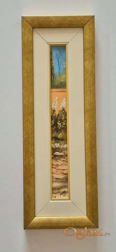 Tekst oglasa: <p>Ulje na platnu Pejzaz 2, prelepo umetnicko delo. Minijatura. Slika je uramljena u jako lep ram, dimenzije slike sa ramom 45 x 16. Privatna kolekcija.</p> |