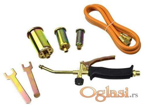 Tekst oglasa: <p>Plinski brener sa tri dizne<br /> - Ručka za protok gasa<br /> - Snaga maks . 19.5 KV<br /> - 1,5 m crevo <br /> - 3 izmenljive dizne prečnika od 50 , 35 , 25 mm<br /> - Dužina gorionika zajedno sa vrhom od oko 40 cm<br /> - Potrošnja gasa od 2000 g / h ( TNG )<br /> - Temperatura do 1.850 stepeni<br /> - 2 ključa</p> <p>Proizvod: Poljska<br /> Novo i ne korisceno</p> <p>Ukoliko zelite da porucite, posaljite poruku preko SMS PORUKE ili VIBERA <br /> 1. Ime i prezime<br /> 2. Ulica i broj<br /> 3. Postanski broj mesto<br /> 4. Kontakt telefon</p> <p>Ili pozovite na broj telefona 0611914635</p> |