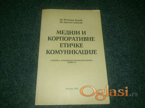 Tekst oglasa: <p>Naslov: Mediji i korporativne etičke komunikacije <br /> Autor(i): Živojin Đurić, Dragan Subotić <br /> Izdavač: Institut za političke studije <br /> Mesto: Beograd <br /> Godina: 2009 <br /> Povez: mek <br /> Strana: 296 <br /> Format: 25 cm <br /> Pismo: ćirilica <br /> Stanje knjige: odlično očuvana <br /> </p> <p>Uplata se može izvršiti pouzećem, a može i pre slanja uplatom na račun u Telenor banci. <br /> Troškove slanja plaća kupac. <br /> Lično preuzimanje podrazumeva dolazak na mesto gde se dogovorimo (Beograd - uglavnom centar, Muzej Istorije Jugoslavije, tj. Hajd Parka, Autokomanda) u tom slucaju i plaćanje lično. </p> |