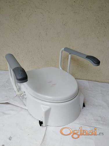 Tekst oglasa: <p>Nastavak za wc školjku sa naslonima za ruke.</p> <p>Maksimalna visina nastavka je 16 - 20 cm, zavisi da li se meri prednja ili zadnja strana nastavka.</p> <p>Može da se podesi u 3 nivoa visine (to su ove 3 rupe na zadnjem delu nastavka, gledano sa strane, i 3 rupe gledano na prednjem delu nastavka, takođe gledano sa strane:( fotografije 12 i 13), tako da nastavak bude "zaronjen" ka napred ili ka nazad ili pak u ravnom položaju, u zavisnosti koji položaj najviše odgovara korisniku . . .</p> <p>Nastavak može da se montira na sve školjke ovalnog oblika, za školjke kockastog oblika morate proceniti sami . . .</p> <p>Montira se na rupe na koje se montira i obična wc daska. . .</p> <p>Nasloni za ruke, mogu da se podižu nezavisno jedan od drugog, kao i da se demontiraju, ukoliko za time ima potrebe, kao i da se koristi samo jedan naslon po potrebi . . .</p> <p>Rađen je za nemačko tržište od kvalitetnih materijala.</p> <p>Nosivost nastavka je do 120 kg.</p> <p>U ponudi imamo i nastavke visine 8- 10 cm, sa i bez rukohvata, kao i podupirače za ustajanje sa wc školjke, zadnja fotografija . . .</p> |