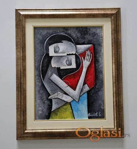 Tekst oglasa: <p>Ulje na platnu Zagrljaj, prelepo umetnicko delo. Slika je uramljena u jako lep ram, dimenzije slike sa ramom 55 x 45. Privatna kolekcija.</p> |