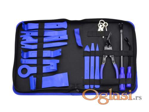 Tekst oglasa: <p>Alata za skidanje tapacirunga i radia CD 20 komada</p> <p>Klešta za manžetne</p> <p>Futrola sa zatvaračem</p> <p>Tehnički podaci:</p> <p>Specijalizovani set koji sadrži bubice i ključeve za rastavljanje radija, kockica, traka, kopča i presvlaka u automobilima i tehničkim uređajima.</p> <p>Manšete od očvrslog NILON-a</p> <p>Imaju posebne profile koji omogućavaju upotrebu poluge pri demontaži</p> <p>Štiti od oštećenja</p> <p>Novo i ne korišćeno <br /> </p> <p>Ukoliko zelite da porucite, posaljite poruku preko SMS PORUKE ili VIBERA <br /> 1. Ime i prezime<br /> 2. Ulica i broj<br /> 3. Postanski broj mesto<br /> 4. Kontakt telefon</p> <p>Ili pozovite na broj telefona<br /> 061/191-4635</p> |