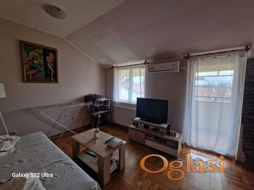 Tekst oglasa: <p>Odličan dupleks na telepu, blizu bulevara Patrijarha Pavla, nalayi se na prvom spratu ima 63m2 stvarne površine od kojih su 4 pod kosinama u spvaćoj sobi na spratu. U stan se ulazi u kratak hodnik koji vodi do kuhinje, kupatila i dečije sobe, u produžetku je veliki prostrani dnevni boravak koji izlazi na terasu. Grejanje je na gas ili na strujne grejače koji greju radijatore, račun struje u grejnoj sezoni ne prelazi 6000 din.</p> <p>Prodaje se sa svim stvarima osim bele tehnike i televizora u njemu.</p> |