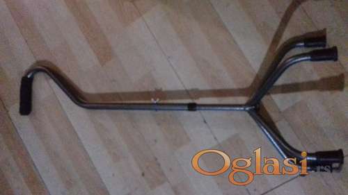Tekst oglasa: <p>Prodajem metalni štap za hodanje.</p> <p>Unikatno šaren.</p> <p>Četiri kraka.</p> <p>Šteluje se za odgovarajuću visinu ( sedam visina ).</p> |