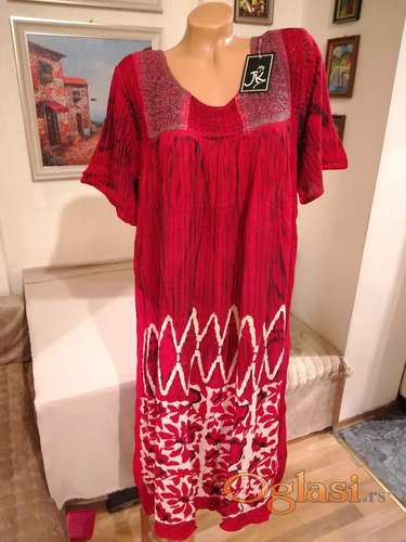 Tekst oglasa: <p>Nova zenska indijska haljina za punije dame Nini. Indijska. Odlicna indijska zenska haljina za punije devojke i dame svih generacija. Vrlo lepog dezena, prijatna za nosenje, uradjena od veoma kvalitetnog materijala. Moze se nositi u svim prilikama. Haljina je uradjena od laganijeg materijala, idealna za svecane prilike. Haljina poseduje ukrase u vidu bisera napred na grudima i ramenima kao i lepu saru pri dnu haljine sa prednje strane. Dobra zenska haljina za svecane i posebne prilike. Indijska haljina za punije dame i devojke Nini je nova sa etiketom. <br /><br /> Boja: Crvena sa sarom i ukrasima. <br /><br /> Velicina: Univerzalna, za punije. <br /><br /> Sastav: 100% viskoza. <br /><br /> Dimenzije: <br /><br /> duzina 120<br /> ramena 45<br /> pazuh 63 <br /> struk 90 <br /> kukovi 100</p> <p> </p> <p><strong>Radi jeftinije postarine mozete izabrati opciju uplate novca na racun, tako da cete time platiti manju postarinu i do 250 dinara. Broj racuna za uplatu novca cete zatraziti od nas. Isporuka robe se vrsi brzom postom PostExpress na adresu koju dobijemo od Vas.</strong></p> |