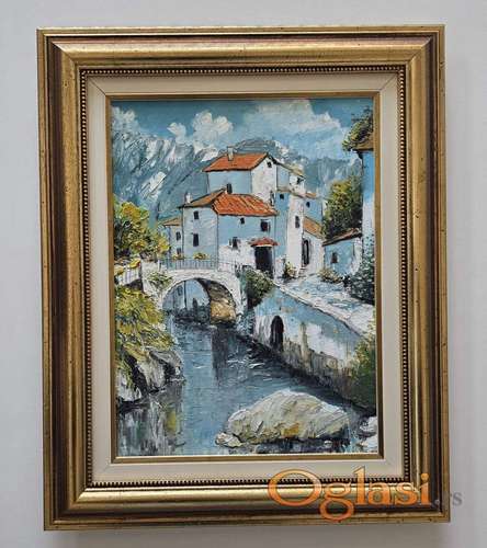 Tekst oglasa: <p>Ulje na platnu Most koji vodi kuci, prelepo umetnicko delo. Slika je uramljena u jako lep ram, dimenzije slike sa ramom 55 x 45. Privatna kolekcija.</p> |