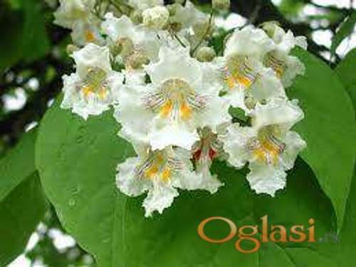Tekst oglasa: <p><br /><br /> <br /><br /> Dekorativno listopadno <strong>medonosno</strong> drvo odlicno za hladovinu. Visine rasta do 20m. siroke krosnje, listovi su srcasti veliki do 10-20cm. Po literaturi listovi Katalpe deluju odbojno na komarce. Cveta belim krupnim cvetovima Maja-Juna. Brzog rasta. Voli suncana mesta i prilicno je otporna vrsta sto se tice oboljenja i stetocina. Nema jak koren pa se moze saditi u dvoristu blizu staza.<br /><br /><br /><br /><br /><br /><br /><br /> <br /><br /> <br /><br /><strong>Za porudzbinu sadnica posaljite poruku sa Vasim podacima ili na telefon:</strong><br /><strong>Ime i prezime. ✔️ </strong><br /><strong>Ulica i broj. ✔️ </strong><br /><strong>Mesto i postanski broj. ✔️ </strong><br /><strong>Broj telefona za kontakt. ✔️ </strong><br /><strong>Kolicina i naziv sadnica. ✔️ </strong></p> |