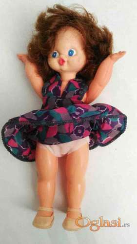 Tekst oglasa: <p><strong>Prelepa vintage lutkica visine 23 cm</strong><br /> glavu ima gumenu, a telo plasticno,<br /> ima cak i cipelice . . .</p> |