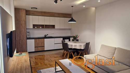 Tekst oglasa: <p>Izdaje se nov, potpuno opremljen stan sa garaznim mestom.</p> <p>Stan je na cetvrtom spratu, dvorisno orijentisan, sa lepim pogledom, miran i tih.</p> <p>Jedna spavaca soba sa bracnim krevetom i ormanima.</p> <p>Druga soba je sa velikim ormanima, radnim stolom i krevetom za jednu osobu.</p> <p>Dnevni boravak je sa ugaonom garniturom na razvlacenje, trpezarijskim stolom za cetiri osobe i kuhinjom.</p> <p>Maksimalan broj osoba u stanu je 3.</p> <p>Uz stan dolazi i garazno mesto.</p> <p>Grejanje je na gas po utrosku.</p> <p>Depozit u visini kirije je obavezan.</p> <p>Pusenje u stanu nije dozvoljeno.</p> <p>Kucni ljubimci nisu dozvoljeni.</p> <p>Minimalan period zakupa je 12 meseci. Stan je odmah useljiv.</p> |