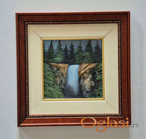 Tekst oglasa: <p>Ulje na kartonu Vodopad, prelepo umetnicko delo. Minijatura. Slika je uramljena u jako lep ram, dimenzije slike sa ramom 28 x 28. Privatna kolekcija.</p> |