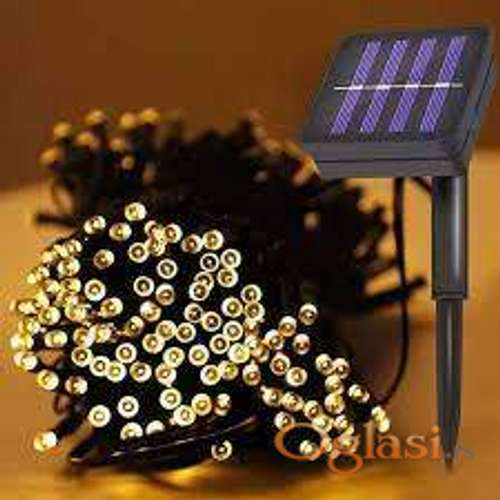 Tekst oglasa: <p>Novogodisnja rasveta Solarne LED lampice Novogodisnje Vodootporne 100 LED dioda<br /> Solarno napajanje, nema potrebe za spoljnim napajanjem.<br /> Automatski se pale kada padne mrak.<br /> Vise modova rada.<br /> Novogodišnje Vodootporne Solarne LED Lampice 100 Led dioda<br /> Boja: RGB sarene<br /> Može se instalirati na zid, prozor, vrata, pod, plafon, travu, drvo. <br /> Boja: RGB<br /> Rastojanje između lampica: 8-10 cm<br /> Ukupna dužina: oko 10 m<br /> Broj sijalica: 100 kom. <br /> Tip sijalice: LED<br /> Upotreba: spoljašnji prostor<br /> Vreme punjenja: 4-6 sati<br /> Vreme rada: 8-12 sati<br /> Svetla: 8 moda rada<br /> Dostupne boje: Bela, Plava, Toplo Bela, RGB sarena<br /><strong><strong><strong>Mogucnost licnog preuzimanja na Novom Beogradu </strong><br /><strong>slanjem brzom postom</strong></strong></strong></p> |