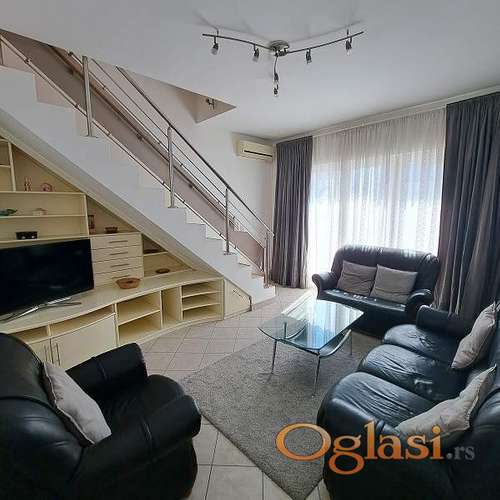 Tekst oglasa: <p>Izdaje se dupleks penthaus na odličnoj lokaciji u neposrednoj blizini Hrama Svetog Save. Stan se prostire na 120m² i nudi izuzetan komfor sa dve spavaće sobe, radnom sobom i dva kupatila. Dnevni boravak je prostran, povezan s kuhinjom i trpezarijom, uz izlaz na jednu od dve terase koje pružaju prelep pogled na grad. Stan je kompletno opremljen kvalitetnim nameštajem i uređajima.</p> <p>Nalazi se na 4. spratu manje stambene zgrade, bez lifta, garaza u sklopu zgrade uz doplatu.</p> <p>Kućni ljubimci nisu dozvoljeni.</p> <p>Zakup na duži vremenski period.</p> <p>Za više informacija i zakazivanje razgledanja, kontaktirajte nas putem:</p> <p>Telefon/Viber/WhatsApp:</p> <p>+381(0)638211760 ,</p> <p>+381(0)606689686 ,</p> |
