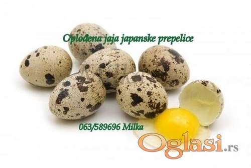 Tekst oglasa: <p>Oplođena sveža jaja japanske prepelice za konzumiranje i oplodnju. Prepelice de hrane klicama raznih žitarica (pšenicea, suncokret , kukuruz) koje sama spremam, šatgarepom i raznim lekovitim biljem, manjim delom granulama.</p> <p>Jaja za konzumiranje 15 dinara,</p> <p>Jaja za oplodnju 20 dinara.</p> <p>Takođe u ponudi</p> <p>Jaja za inkubaciju Texsas belih prepelica 50 dinara.</p> <p>Poručivanje na telefon 063/589696</p> <p> </p> <p>Šaljem postexpresom, moguće takođe i lično preuzimanje.</p> |