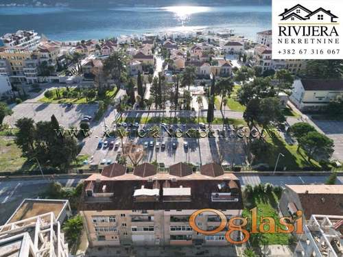 Tekst oglasa: <p>Kumbor stan na ekskluzivnoj lokaciji do Portonovog. Povrisna stana 65m2, (uknjizen na 43 m2), stan dupleks (na dva nivoa), Ulazni hodnik, kupatilo, kuhinja sa trpezarijom, dnevna soba, (gornja etaza) spavaca soba, terasa. Stan u dobrom stanju, uknjizen, mali bocni pogled na more. Odlicna lokacija za zivot i odmor. Cijena: 143.000 eura</p> |