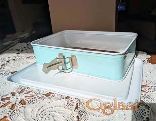 Tekst oglasa: <p>Zenker kalup (Made in Germany)<br /> Dimenzije: 18 x 28 cm<br /> Materijal: Metal sa premazom protiv lepljenja<br /> Boja: Svetloplava sa belom unutrašnjosti<br /> Brend: Zenker (Made in Germany)<br /> Stanje: Odlično, funkcionalno, sa mehanizmom zatvaranja<br /> Ovaj kvalitetan kalup idealan je za pripremu kolača, pita i drugih slanih i slatkih delikatesa. Mehanizam za lako otpuštanje ivica omogućava jednostavno vađenje gotovih poslastica.</p> |
