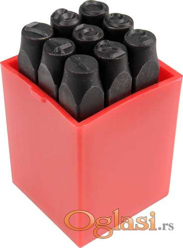 Tekst oglasa: <p>Komplet brojevi i slova za ukucavanje 8 mm <br /> Oznake se koriste za trajno obeležavanje raznih elemenata i delova . <br /> Fino izrađeni sa najboljim materijalima<br /> Dizajniran za profesionalne primene u industriji i trgovini<br /> Trajno obeležavanje raznih elemenata i delova brojevima<br /> - Napravljen od specijalnog ugljeničnog čelika simbol 1045<br /> - Kaljeni 50-55 HRC</p> <p>Oznake od ugljeničnog čelika 1045CS, kvadratne olovke visine 72,5 mm i 11,2 mm, završene sa oznakom - slovo visine 8 mm. Brojeve visine 8 mm</p> <p>Komplet sadrži: <br /> 9 brojeva: (0, 1,2,3,4,5,6,7,8 , prevrtala 6-9 ) u svojoj kutiji<br /> 27 komada slova (A-Z) u svojoj kutiji</p> <p>Proizvod: Poljska<br /> Novo i ne korisceno</p> <p>Ukoliko zelite da porucite, posaljite poruku preko SMS PORUKE ili VIBERA <br /> 1. Ime i prezime<br /> 2. Ulica i broj<br /> 3. Postanski broj mesto<br /> 4. Kontakt telefon</p> <p>Ili pozovite na broj telefona 0611914635</p> |