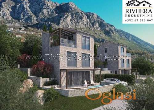 Tekst oglasa: <p>Na prodaju dvije prelijepe vile koje su trenutno u izgradnji u živopisnom području Blizikuće, Budva.</p> <p>Opis nekretnine: Jedno parking mjesto za svaku vilu</p> <p>Privatni bazen od 15m² za svaku vilu</p> <p>Vila A1:</p> <p>Površina placa: 230m²</p> <p>Površina kuće: 113.90m²</p> <p>Prvi sprat: trpezarija, kuhinja, stepenice, toalet, tehnička soba</p> <p>Neto površina sprata: 45.32m²</p> <p>Drugi sprat: stepenice i hodnik, 2 spavaće sobe, 1 kupatilo</p> <p>Neto površina sprata: 35.88m²</p> <p>Treći sprat: stepenice i hodnik, spavaća soba, kupatilo, terasa</p> <p>Neto površina sprata: 32.70m²</p> <p>Vila A2:</p> <p>Površina placa: 230m²</p> <p>Površina kuće: 113.90m²</p> <p>Prvi sprat: trpezarija, kuhinja, stepenice, toalet, tehnička soba</p> <p>Neto površina sprata: 45.32m²</p> <p>Drugi sprat: stepenice i hodnik, 2 spavaće sobe, 1 kupatilo</p> <p>Neto površina sprata: 35.88m²</p> <p>Treći sprat: stepenice i hodnik, spavaća soba, kupatilo, terasa</p> <p>Neto površina sprata: 32.70m²</p> |