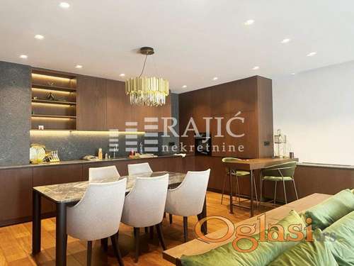 Tekst oglasa: Stan u luksuznoj novoj zgradi na dobroj lokaciji na Vračaru. Nekretnina je kompletno opremljena, po strukturi stan je četvorosoban. Prostorije:ulazni hodnik, prostran dnevni boravak sa izlazom na terasu, spavaća soba sa sopstvenim kupatilom (tuš kabina) i degažmanom za garderobu, dečija soba, radna soba ili gostinjska, kupatilo (kada), ostava, vešernica (mašina za pranje veša i sušenje veša). Stan se izdaje sa garažom. Zgrada ima obezbeđenje i video nadzor 24h. Agencijska usluga 60% |