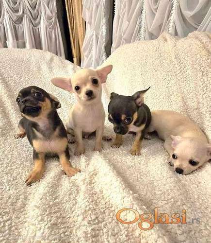 Tekst oglasa: <p style="text-align:left;"> </p> <p style="text-align:left;"><strong><strong>NOVOGODIŠNJI POPUST</strong></strong>, četiri mužjačića <strong><strong>čivave</strong></strong>, stari 2,5 meseca,</p> <p style="text-align:left;">čišćeni od parazita, vakcinisani, spremni za preuzimanje</p> <p style="text-align:left;">po POVOLJNOJ CENI.</p> <p style="text-align:left;">Roditelji u mom vlasništvu.</p> <p>Tel.+38162681115 viber / whatsapp </p> <p>Biljana,</p> <p>Zrenjanin, Srbija</p> |