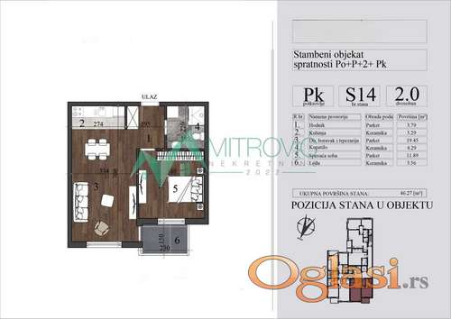 Šifra oglasa: 03-3801634 Datum postavljanja oglasa: 05.03.2026 Kontakt: DRAGAN MITROVIĆ PR AGENCIJA ZA NEKRETNINE MITROVIĆ NEKRETNINE 2022 NOVI SAD Telefon: +381 21 38-31-001 | +381 60 337-11-10 |