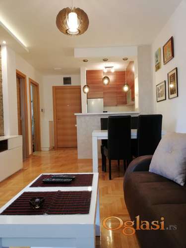 Tekst oglasa: <p>Izdajem kompletno namešten jednoiposoban stan u Hilandarskoj 9, mašina i sušilica za veš, mašina za pranje sudja, televizor, sbb bez ugovorne obaveze, klima, dosta prostora za odlaganje stvari, grejanje gradsko po utrošku, programi za grejanje po danima i vremenskim zonama, terasa, izlaz i iz spavaće i iz dnevne sobe, komarnici</p> |