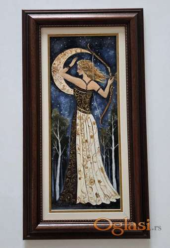 Tekst oglasa: <p>Ulje na platnu Devojka i mesec, prelepo umetnicko delo. Slika je uramljena u jako lep ram, dimebzije slike sa ramom 65 x 35. Privatna kolekcija.</p> |