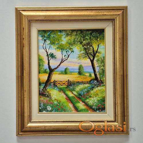 Tekst oglasa: <p>Ulje na lesonitu Kroz letnji dan, prelepo umetnicko delo. Slika je uramljena u jako lep ram, dimenzije slike sa ramom 46 x 40. Privatna kolekcija. </p> |