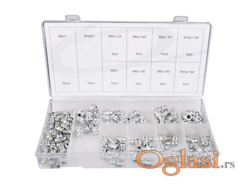 Tekst oglasa: <p>Set glava za mazalicu 110 kom<br /> Set čeličnih čeljusti od 110 komada.<br /> Idealan za upotrebu sa ručnim i hidrauličnim mazivama kuglastim ventilima.<br /> Karakteristike proizvoda<br /> calamitki u veličinama M6 - M10: ravni, 45 ° i 90 °<br /> 110 komada u kompletu<br /> 50 komada - M6 x 1,00<br /> 10 komada - M8 x 1,00<br /> 5 komada - M8 x 1,25<br /> 10 komada - M10 x 1,00<br /> 5 komada - M6 x 1,00 45 °<br /> 10 komada - M8 x 1,00 45°<br /> 5 komada - M10 x 1,00 45 °<br /> 5 komada - M6 x 1,00 90 ° <br /> 5 komada - M8 x 1,00 90°<br /> 5 komada - M10 x 1,00 90 °<br /> Novo i ne korišćeno</p> <p>Ukoliko zelite da porucite, posaljite poruku preko SMS PORUKE ili VIBERA<br /> 1. Ime i prezime<br /> 2. Ulica i broj<br /> 3. Postanski broj mesto<br /> 4. Kontakt telefon</p> <p>Ili pozovite na broj telefona<br /> 061/191-4635</p> |