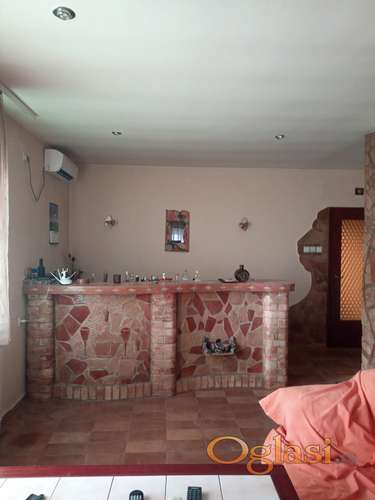 Tekst oglasa: <p>Kuća se nalazi u mirnom kraju grada. Osim dnevnog boravka i trpezarije ima još tri sobe, dva predsoblja, kuhinja, kupatilo, ostava, kotlarnica, zatvorena velika terasa i garaža. U dvorištu se nalazi baštenska kućica, tri boksa za pse i zidana pečenjara sa ražnjem. <br /> Za više informacija može kontakt na viber posle 16h. +38163562624</p> |