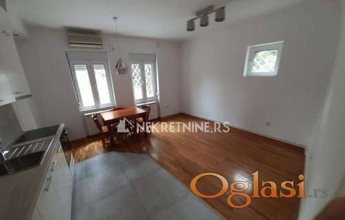 Tekst oglasa: Izdaje se kompletno renoviran stan u predratnoj vili u centru Zemuna, sa posebnim ulazom i odvojenim dvorištem od 150m2. Stan ima visoke plafone 3m, sastoji se od ulaznog hodnika, velike spavaće sobe (15m2), dnevni boravak sa trpezarijom i kuhinjom (20m2), kupatilo i ostava. Sve u stanu je renovirano - aluminijumski prozori, hrastov parket, nova IKEA kuhinja, sa ugradnom rernom staklo-keramičkom pločom i mašinom za sudove, nova veš mašina, veliki ugradni plakar u hodniku i spavaćoj sobi. Grejanje - etažni kotao na struju + podno u kupatilu, hodniku i kuhinji, klima. Stanu pripada uredjeno dvorište sa 2-3 parking mesta i dvorišnom natkrivenom terasom od 16m2. Izuzetno miran kraj, slepa ulica sa porodičnim kućama, vrtićem i parkićem za decu, 5 minuta peške od najstrožeg centra Zemuna. U blizini se nalaze stanice gradskog prevoza i prodavnice. Pogodno i za poslovni prostor-kancelariju. Mesečno plaćanje + depozit u visini jedne zakupnine. Mogućnost opremanja nameštajem po dogovoru. Agencijska provizija 50% od prve zakupnine. |
