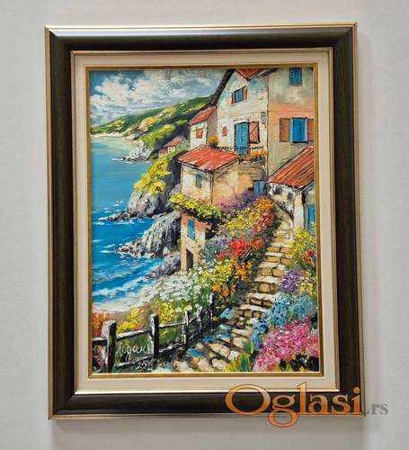 Tekst oglasa: <p>Ulje na lesonitu Raj na moru, prelepo umetnicko delo. Slika je uramljena u jako lep ram, dimenzije slike sa ramom 51 x 41. Privatna kolekcija.</p> |