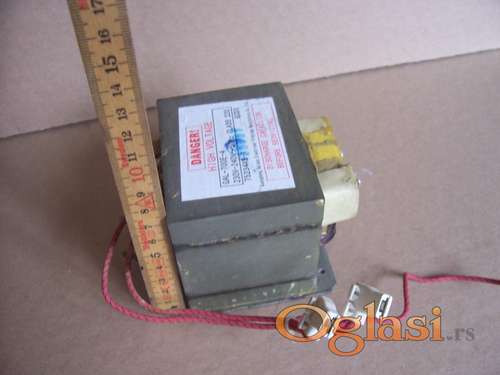 Tekst oglasa: <p>Trafo je od mikrotalasne.<br /> Primar je na 220V a sekundar nekoliko hiljada volti.<br /> Imam trafoe za LG, Samsung, Silvercrest, Gorenje, Toshiba, Goldstar, Elin, Fuego, Panasonic, Moulinex, Bosh, i mnoge druge mikrotalasne pecnice.<br /> TIP Class 220</p> <p>Imam jos dosta razlicitih trafoa od mikrotalasnih i drugih delova za mikrotalasne.</p> <p>Trafo je dosta jak i moze da se iskoristi i za pravljenje punkt aparata, manjeg aparata za varenje ili nekih visokonaponskih projekata kao sto je "lichtenberg fractal wood burning" ili ozbiljnog punjaca za akumulatore 50A-80A.</p> <p>Za punkt aparat je potrebno skinuti visokonaponski sekundar i namotati nekoliko namotaja debele zice, imate uputstva na internetu.</p> <p><br /> U zavisnosti za cega ce se koristiti obicno uz trafo dajem i neke dodatne delove na poklon koji Vam mogu koristiti.</p> <p>Uglavnom imam na stanju i sledece modele trafoa:</p> <p>Class 220<br /> GAL 700E sve verzije<br /> GAL 800E sve verzije<br /> GAL 900E sve verzije<br /> XB 700<br /> MD 701EMR 1<br /> MD 801EMR 1<br /> 6170W<br /> JHT R800<br /> BWL 700E<br /> BWL R800E<br /> 6170W1D102A<br /> Class 200<br /> Y200 STC<br /> Class H<br /> SHV 745EC1<br /> 6170W1D074F<br /> 2607ZPY<br /> 6170W1D057Y<br /> BWL R800E<br /> KHT R805ELG<br /> MHT 5002<br /> KHT R701ELGA<br /> 6170W1D098L<br /> MDT 851EMR<br /> DW 4822 V1<br /> MDT 851EMR<br /> KHT R701ELGA<br /> KHT R805ELGA<br /> 6170W1D057N<br /> DANGER - traze mi ljudi i ovaj model :)<br /> ...</p> <p><br /> Slanje postom 420din (nakon uplate na racun) ili slanje pouzecem oko 650din (ukoliko je tezi trafo postarina moze biti 480 ili pouzecem oko 700din).</p> <p><br /> Za dodatne informacije i porucivanje najbolje pozovite na 064/9797622 (jer retko proveravam poruke ovde). Hvala.</p> |