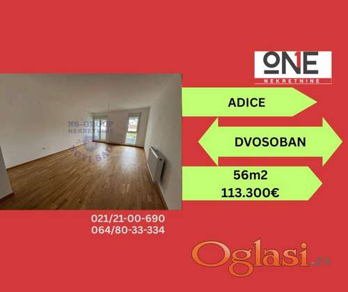 Tekst oglasa: <p>Odličan dvosoban stan na samom početku Adica 56m2. Stan je završen 2025. godine i u njemu se nikad nije živelo. U okolini se nalaze autobuske stanice, Mikromarket, Univer, mesare, pekare, apoteke i dom zdravlja. Za više informacija i razgledanje ovog stan pozovite naše agente....</p> |
